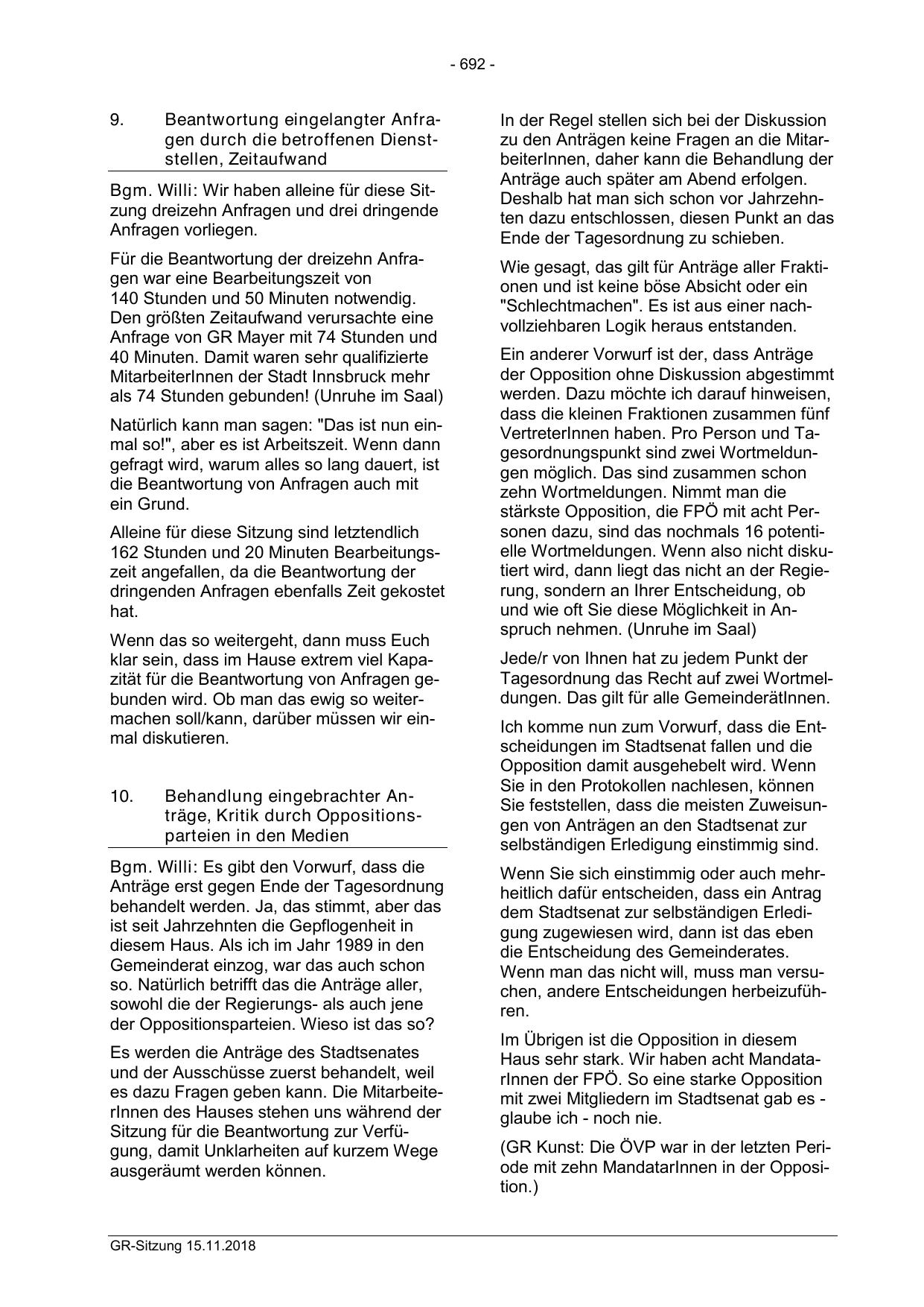 Bgm. Willi: Wir haben alleine für diese Sitzung dreizehn Anfragen und drei dringende