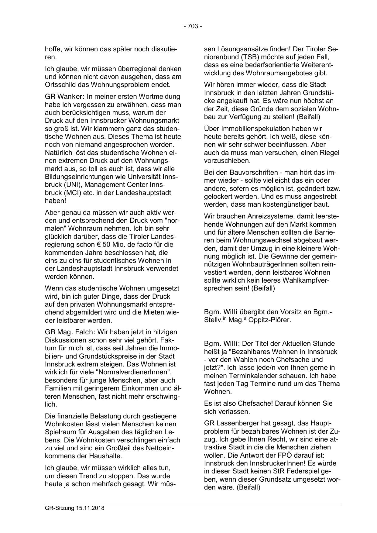 in dieser Stadt keinen StR Federspiel geben, wenn dieser Grundsatz umgesetzt worden wäre. (Beifall)