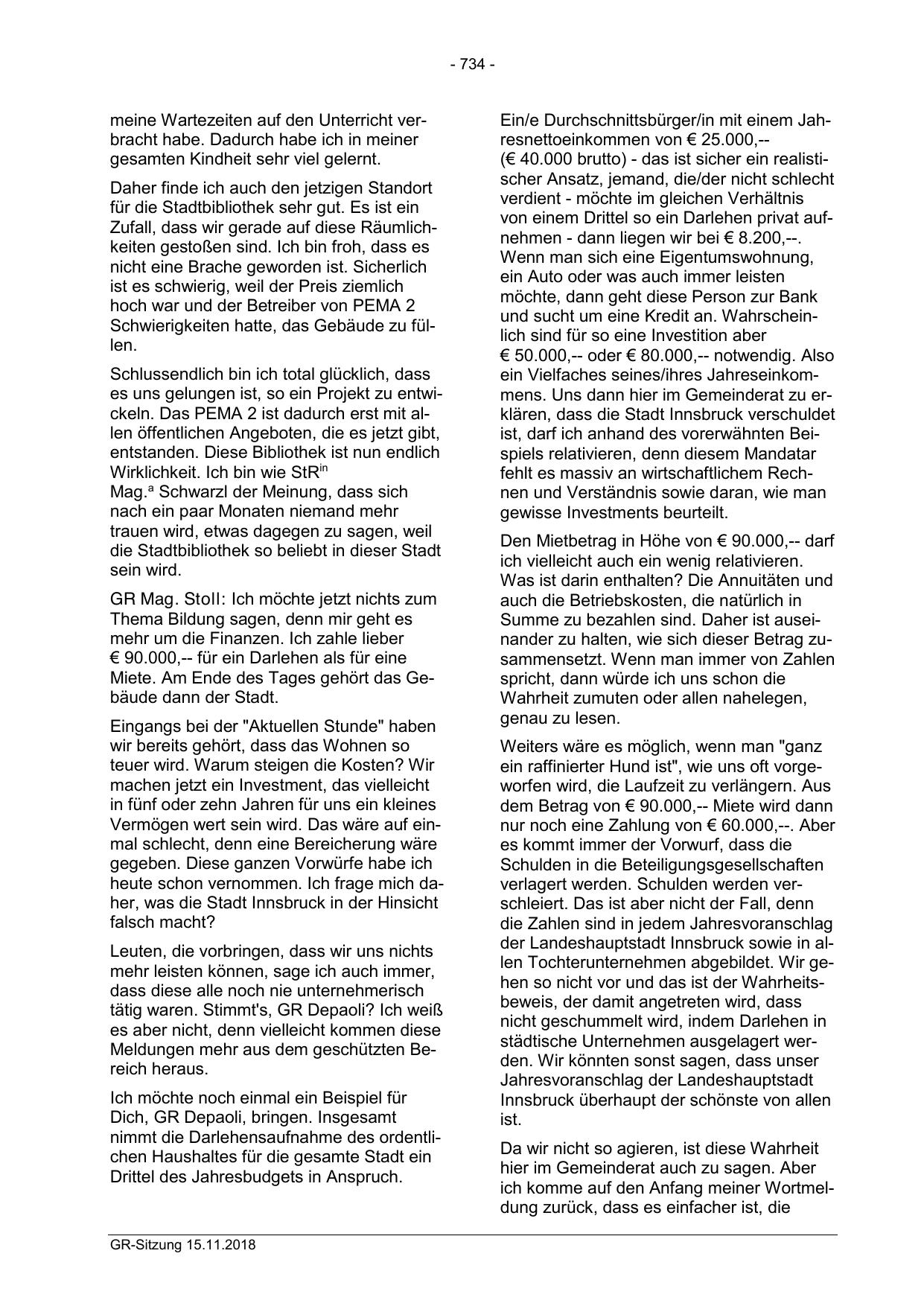 ein Vielfaches seines/ihres Jahreseinkommens. Uns dann hier im Gemeinderat zu erklären, dass die Stadt Innsbruck verschuldet