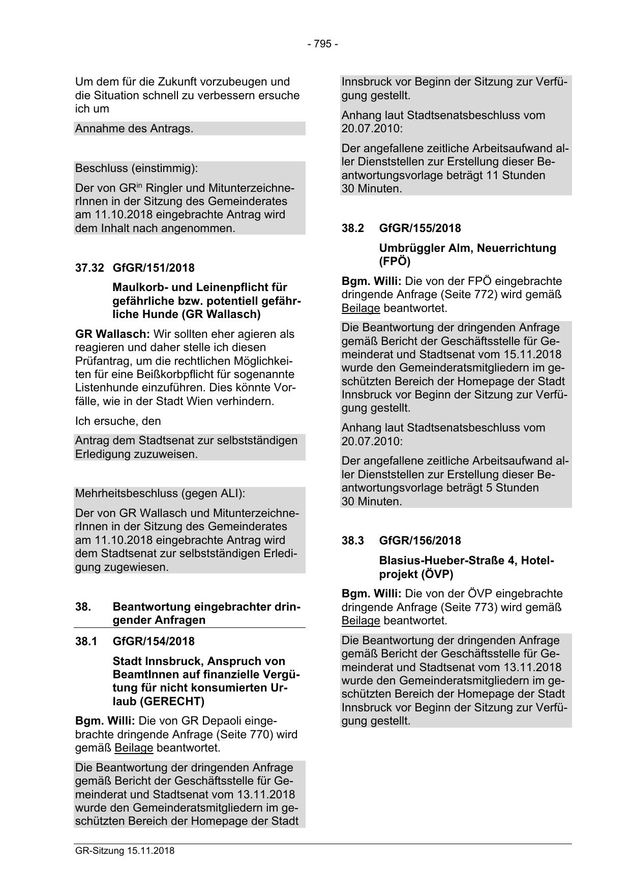 Bgm. Willi: Die von GR Depaoli eingebrachte dringende Anfrage (Seite 770) wird
