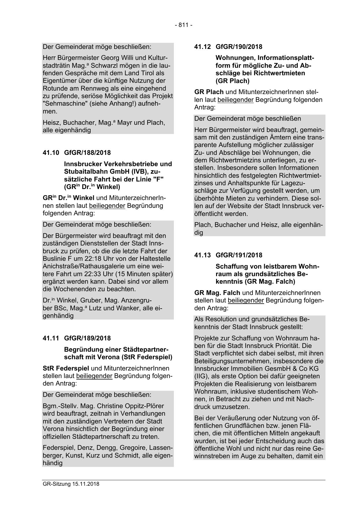 Als Resolution und grundsätzliches Bekenntnis der Stadt Innsbruck gestellt: