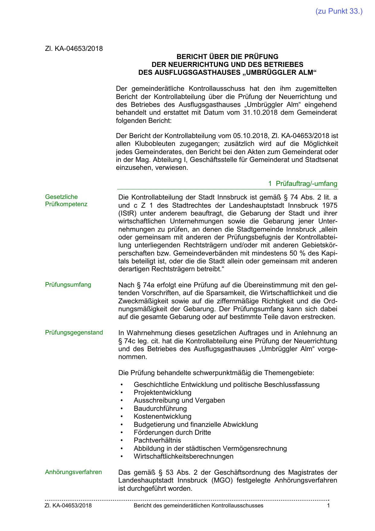 behandelt und erstattet mit Datum vom 31.10.2018 dem Gemeinderat