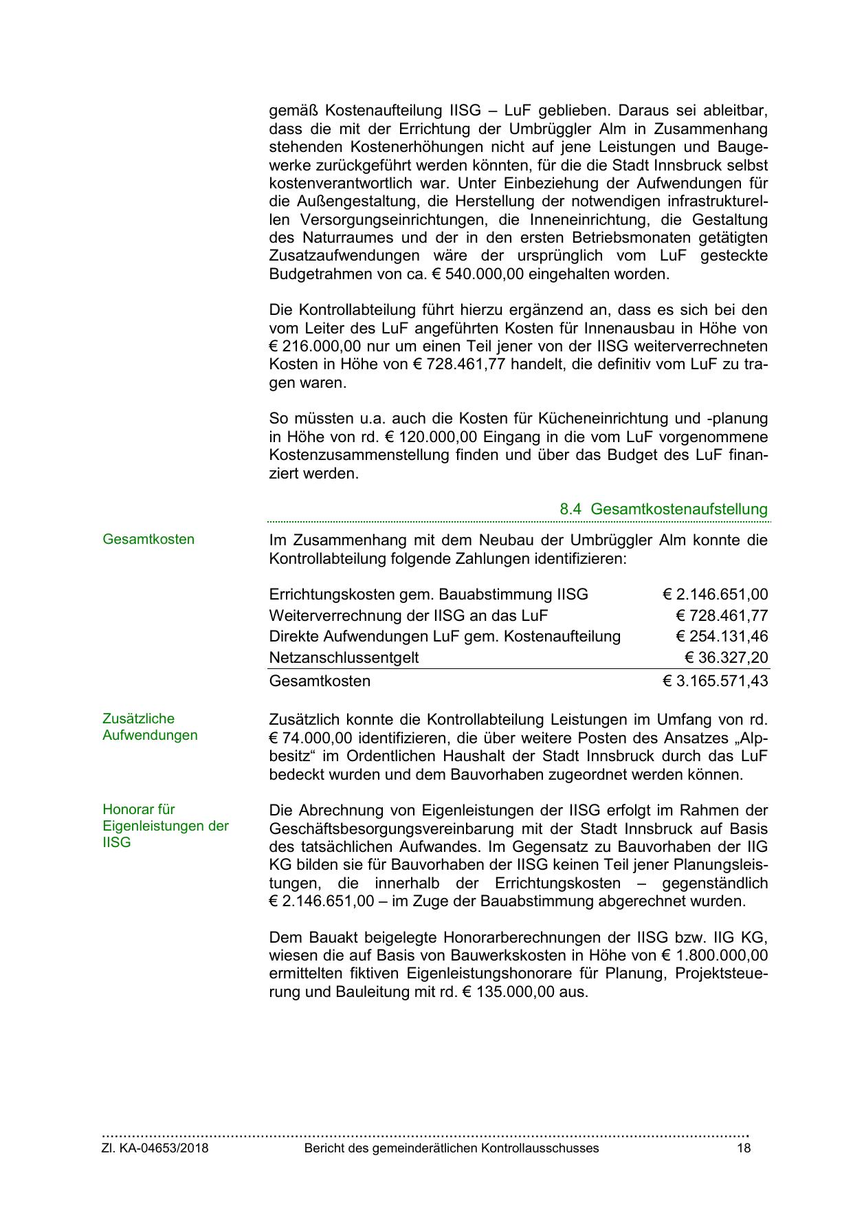 € 74.000,00 identifizieren, die über weitere Posten des Ansatzes „Alpbesitz“ im Ordentlichen Haushalt der Stadt Innsbruck durch das LuF