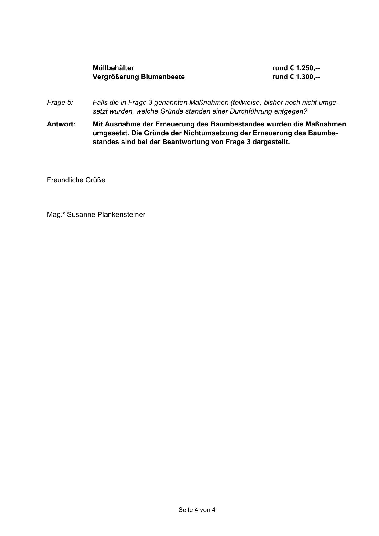 umgesetzt. Die Gründe der Nichtumsetzung der Erneuerung des Baumbestandes sind bei der Beantwortung von Frage 3 dargestellt.