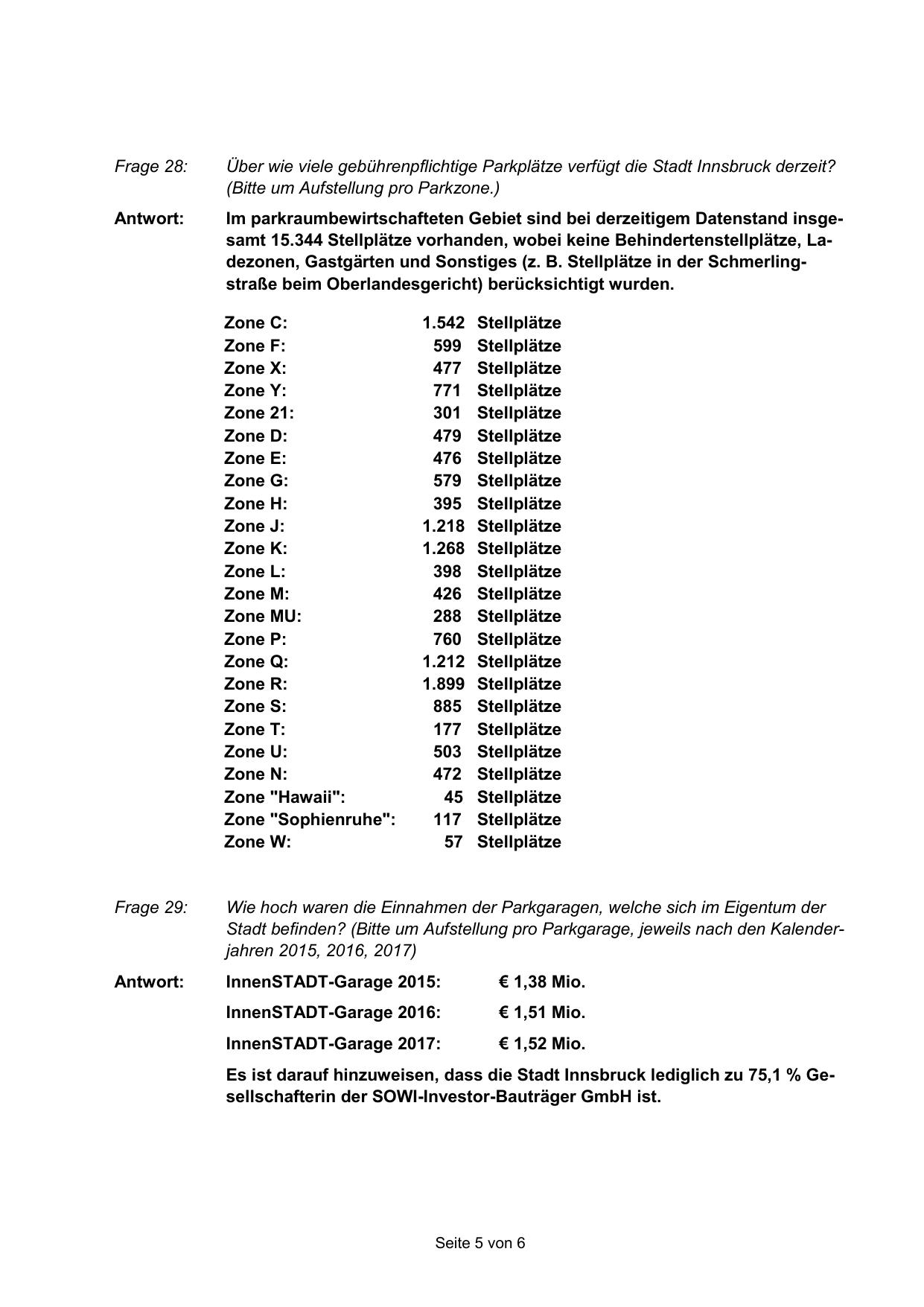 Über wie viele gebührenpflichtige Parkplätze verfügt die Stadt Innsbruck derzeit?