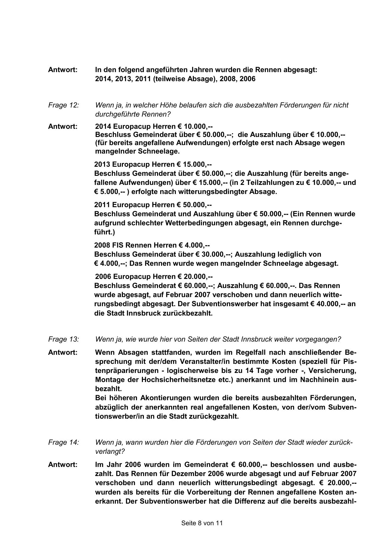 verschoben und dann neuerlich witterungsbedingt abgesagt. € 20.000,-wurden als bereits für die Vorbereitung der Rennen angefallene Kosten anerkannt. Der Subventionswerber hat die Differenz auf die bereits ausbezahlSeite 8 von 11