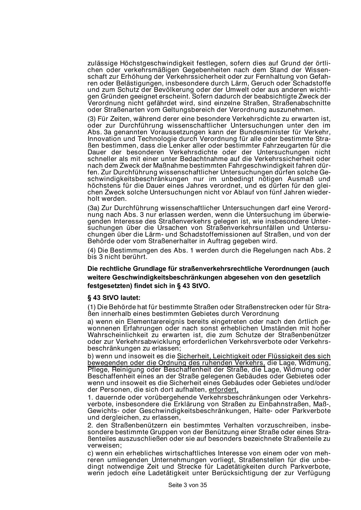 zulässige Höchstgeschwindigkeit festlegen, sofern dies auf Grund der örtlichen oder verkehrsmäßigen Gegebenheiten nach dem Stand der Wissenschaft zur Erhöhung der Verkehrssicherheit oder zur Fernhaltung von Gefahren oder Belästigungen, insbesondere durch Lärm, Geruch oder Schadstoffe