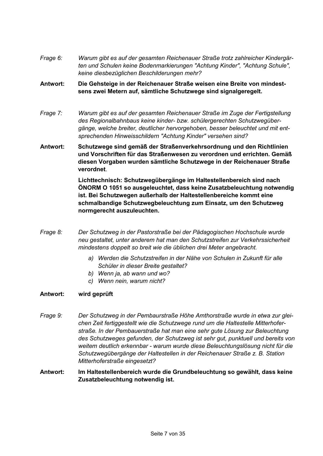 Die Gehsteige in der Reichenauer Straße weisen eine Breite von mindestsens zwei Metern auf, sämtliche Schutzwege sind signalgeregelt.