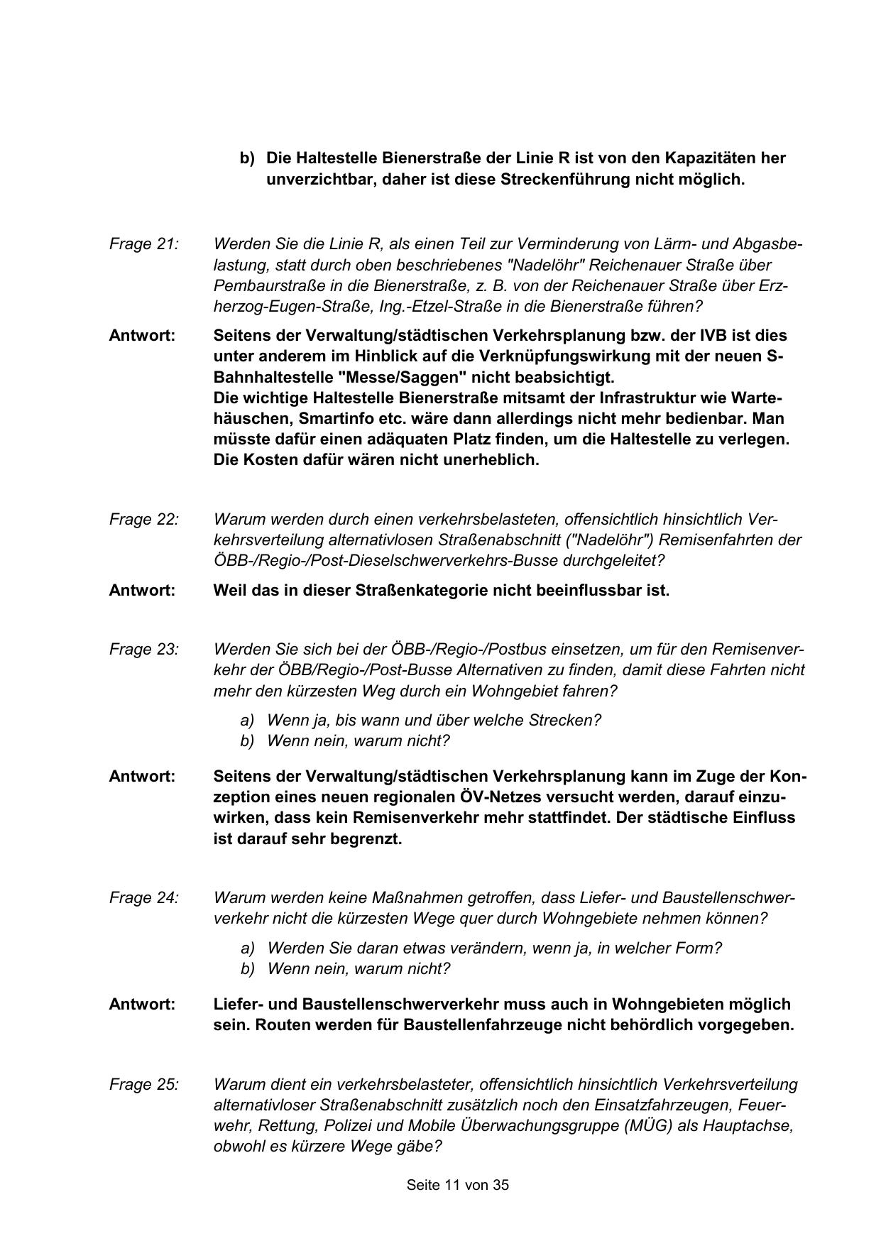 b) Die Haltestelle Bienerstraße der Linie R ist von den Kapazitäten her