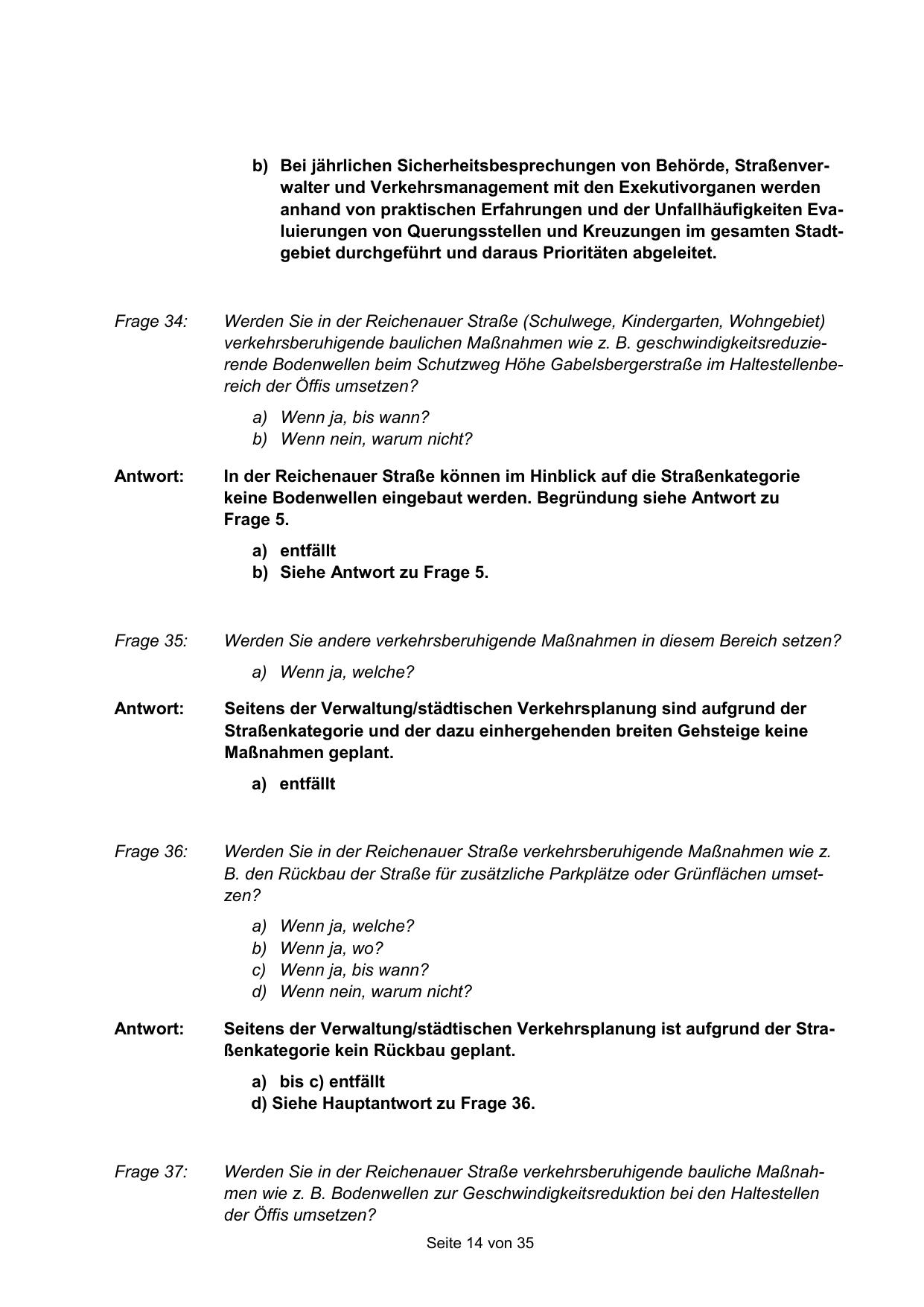 Werden Sie in der Reichenauer Straße verkehrsberuhigende bauliche Maßnahmen wie z. B. Bodenwellen zur Geschwindigkeitsreduktion bei den Haltestellen