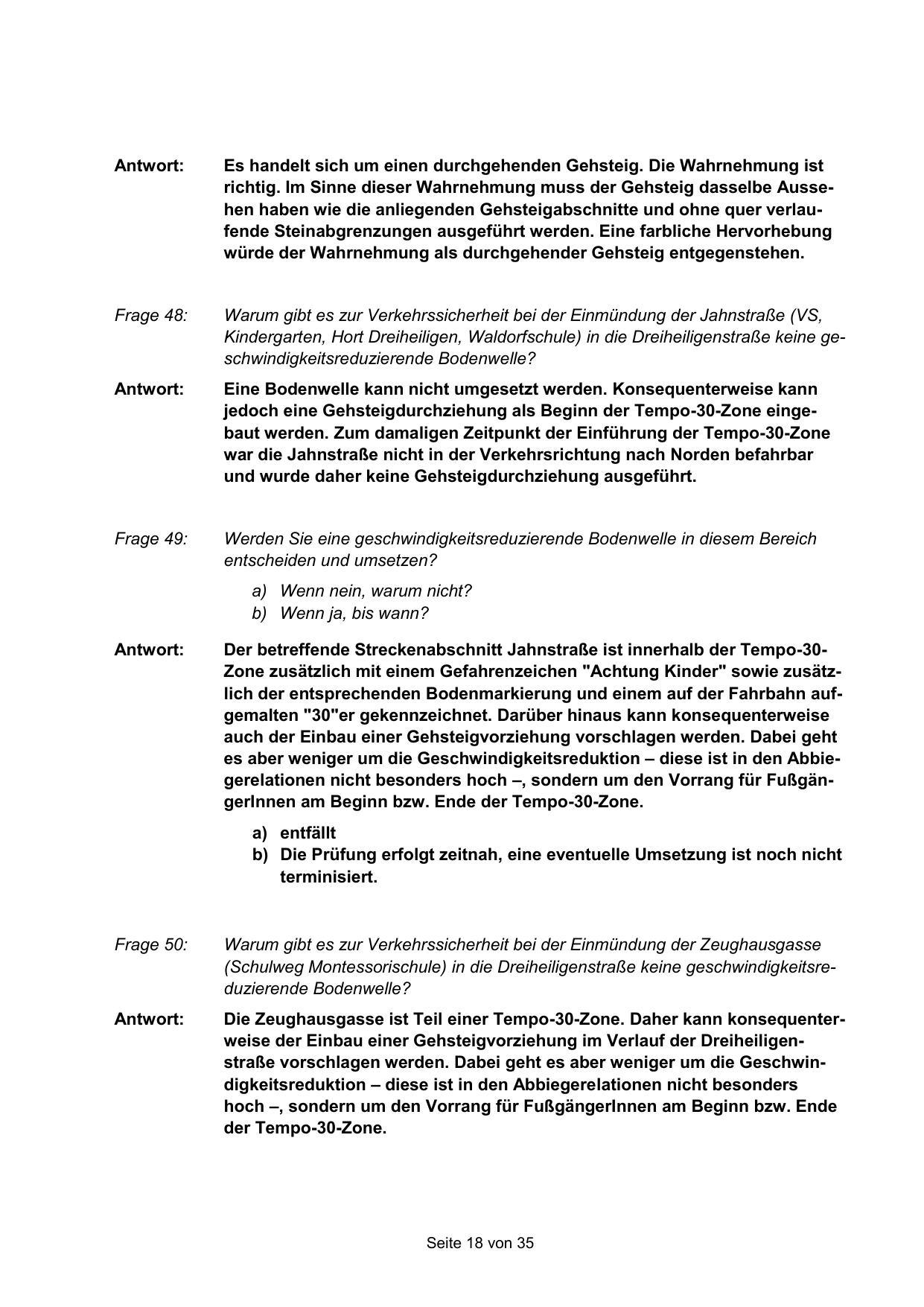 jedoch eine Gehsteigdurchziehung als Beginn der Tempo-30-Zone eingebaut werden. Zum damaligen Zeitpunkt der Einführung der Tempo-30-Zone