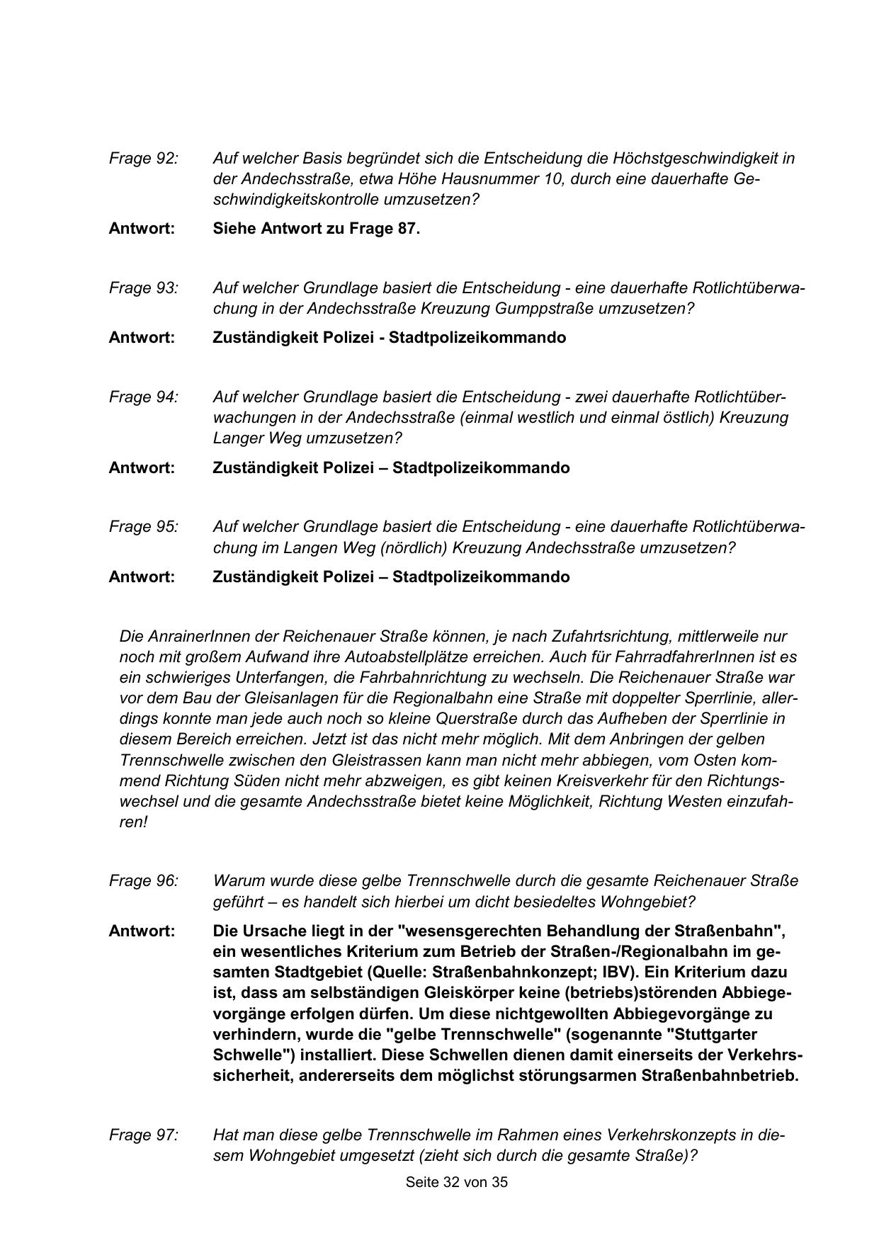 Auf welcher Grundlage basiert die Entscheidung - zwei dauerhafte Rotlichtüberwachungen in der Andechsstraße (einmal westlich und einmal östlich) Kreuzung