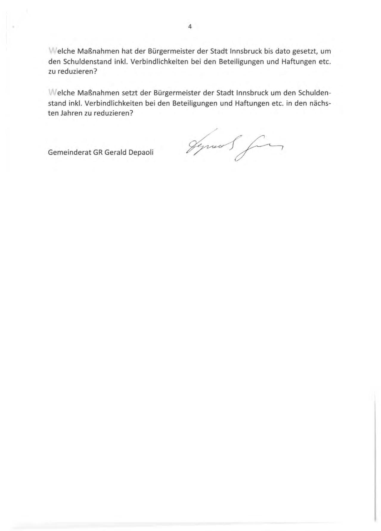 elche Maßnahmen setzt der Bürgermeister der Stadt Innsbruck um den Schuldenstand inkl. Verbindlichkeiten bei den Beteiligungen und Haftungen etc. in den nächsten Jahren zu reduzieren?