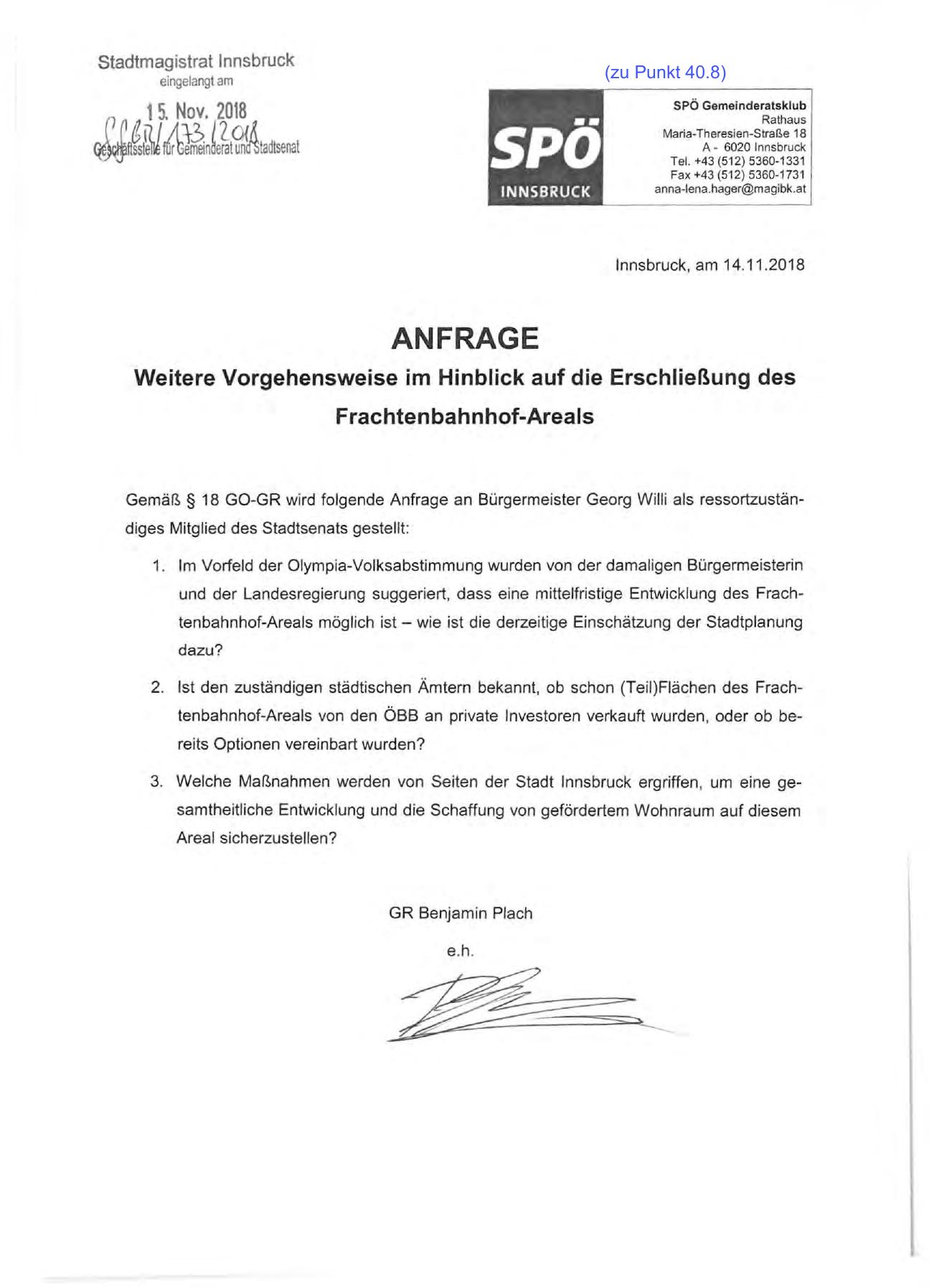 Gemäß § 18 GO-GR wird folgende Anfrage an Bürgermeister Georg Will i als ressortzuständiges Mitglied des Stadtsenats gestellt:
