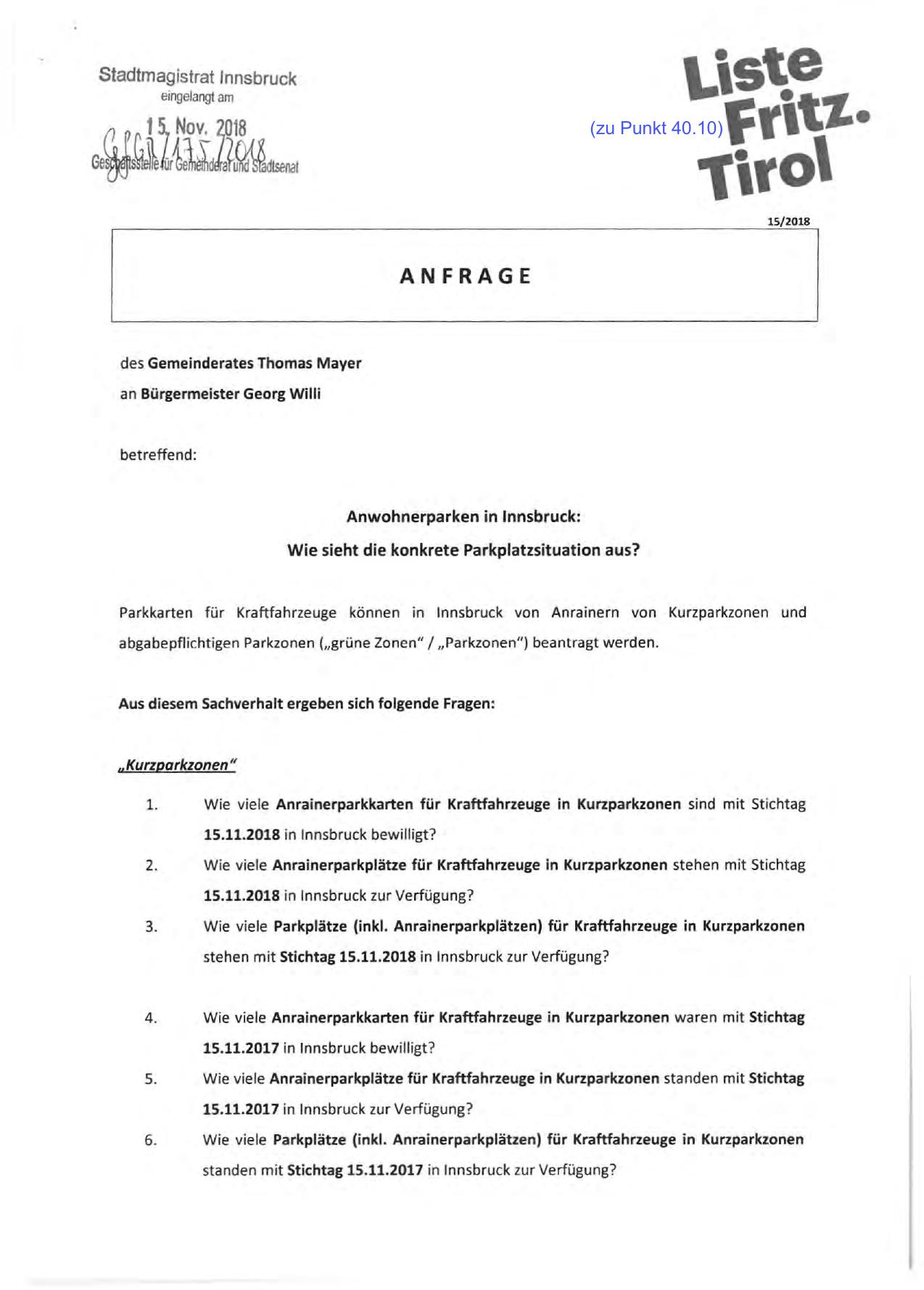 stehen mit Stichtag 15.11.2018 in Innsbruck zur Verfügung?