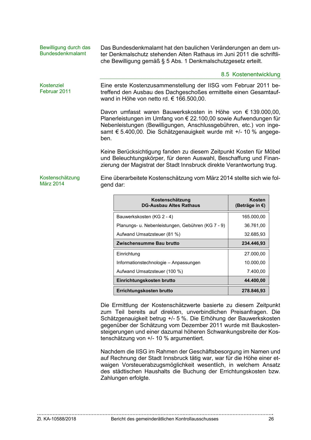 Eine erste Kostenzusammenstellung der IISG vom Februar 2011 betreffend den Ausbau des Dachgeschoßes ermittelte einen Gesamtaufwand in Höhe von netto rd. € 166.500,00.