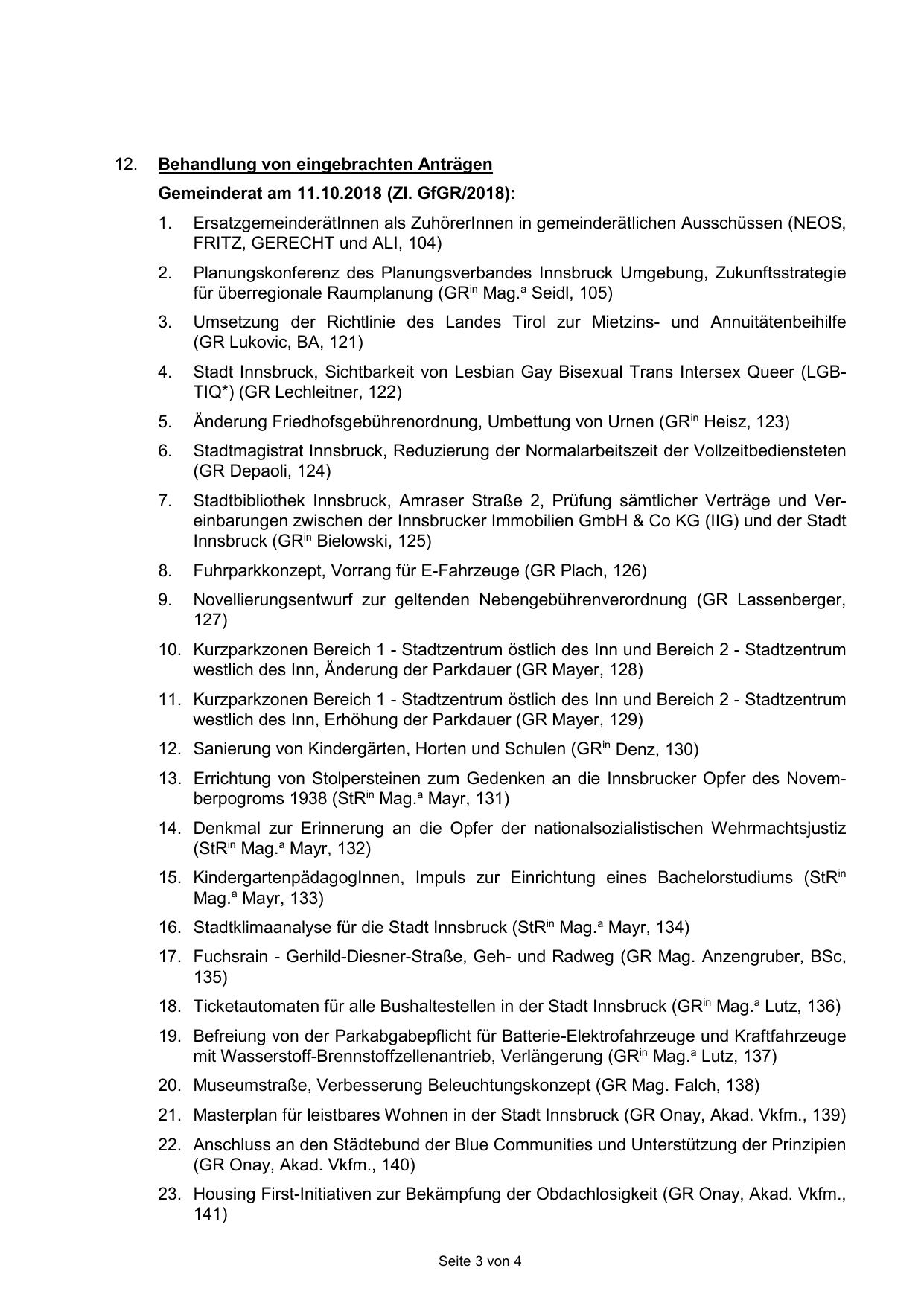 Gemeinderat am 11.10.2018 (Zl. GfGR/2018):