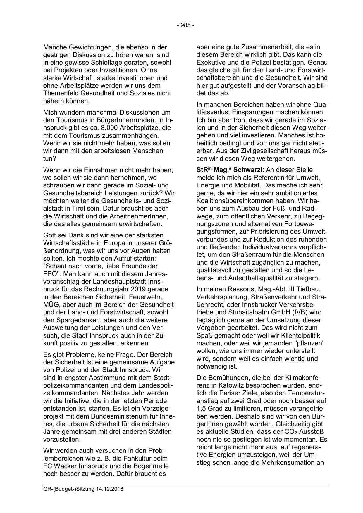 FPÖ". Man kann auch mit diesem Jahresvoranschlag der Landeshauptstadt Innsbruck für das Rechnungsjahr 2019 gerade