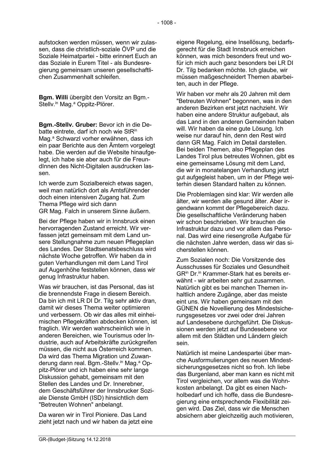 Bgm.-Stellv. Gruber: Bevor ich in die Debatte eintrete, darf ich noch wie StRin