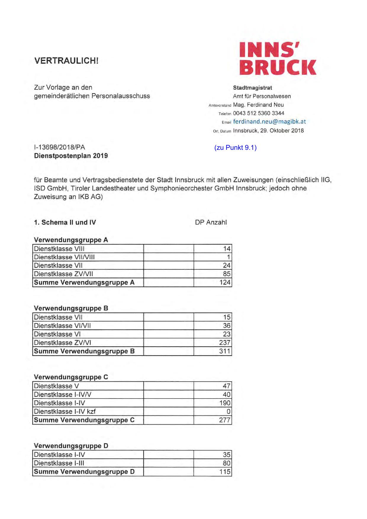 für Beamte und Vertragsbedienstete der Stadt Innsbruck mit allen Zuweisungen (einschließlich IIG,
