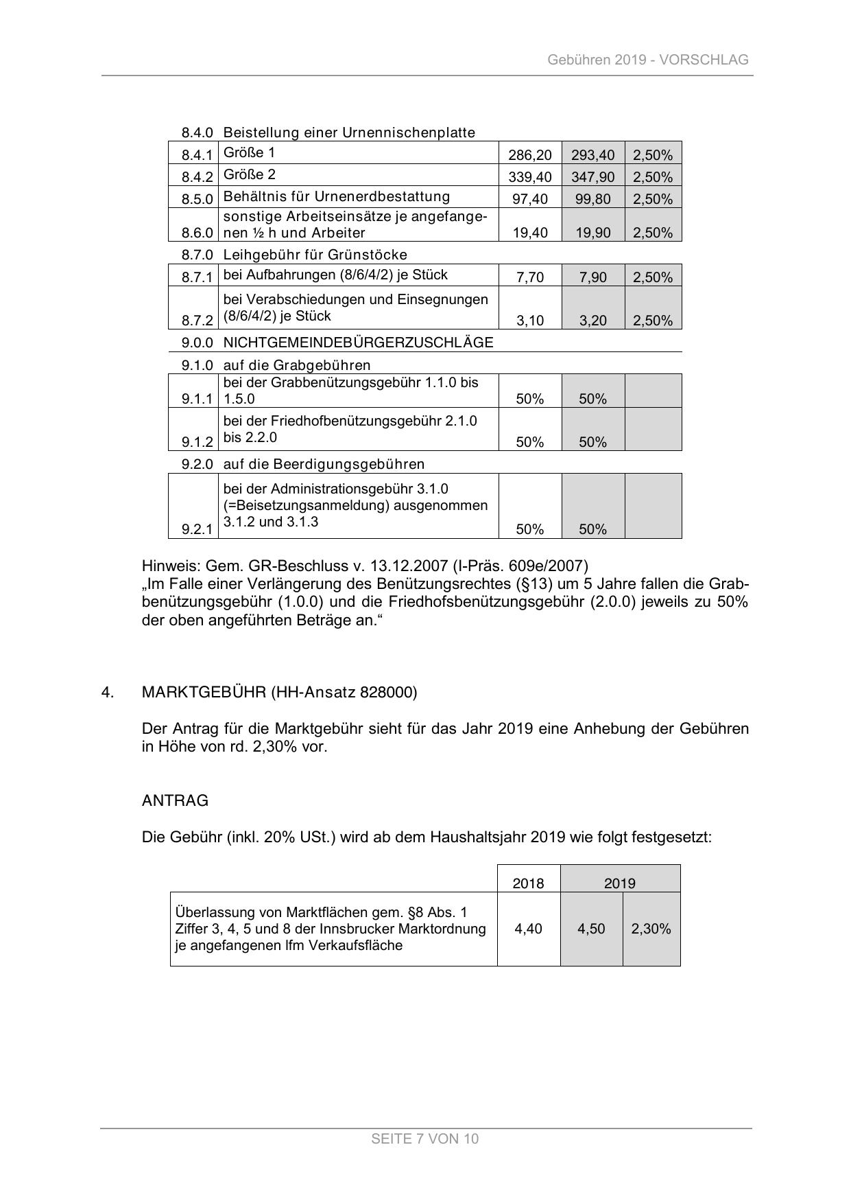 Der Antrag für die Marktgebühr sieht für das Jahr 2019 eine Anhebung der Gebühren
