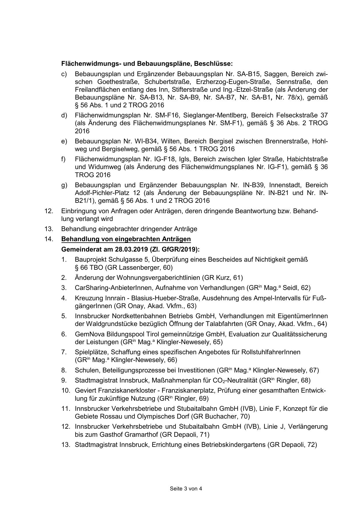 Gemeinderat am 28.03.2019 (Zl. GfGR/2019):