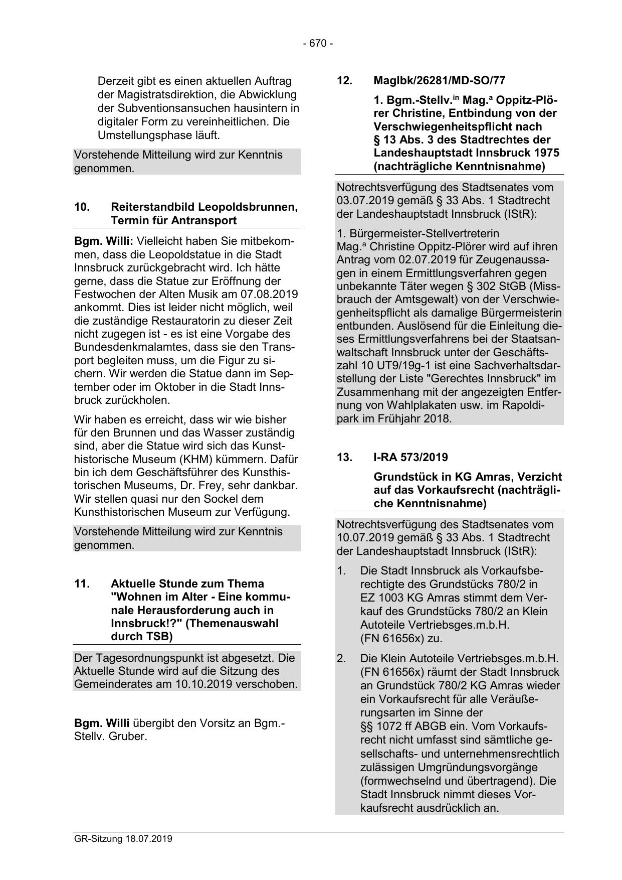 entbunden. Auslösend für die Einleitung dieses Ermittlungsverfahrens bei der Staatsanwaltschaft Innsbruck unter der Geschäftszahl 10 UT9/19g-1 ist eine Sachverhaltsdarstellung der Liste "Gerechtes Innsbruck" im