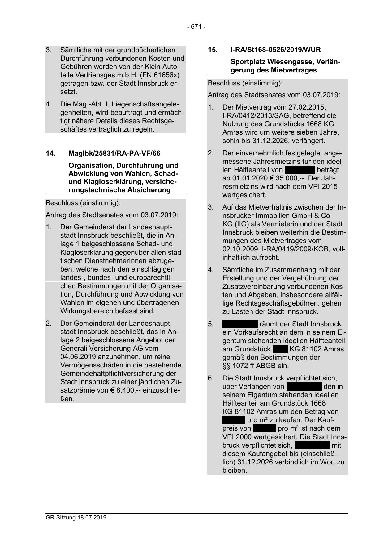 Der Gemeinderat der Landeshauptstadt Innsbruck beschließt, das in Anlage 2 beigeschlossene Angebot der
