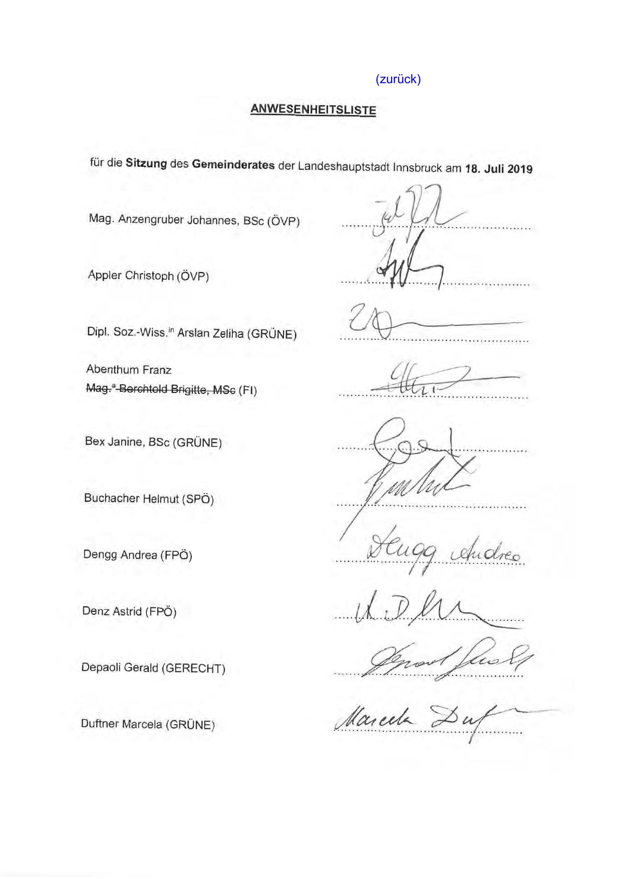 für die Sitzung des Gemeinderates der Landeshauptstadt Innsbruck am 18. Juli 2019