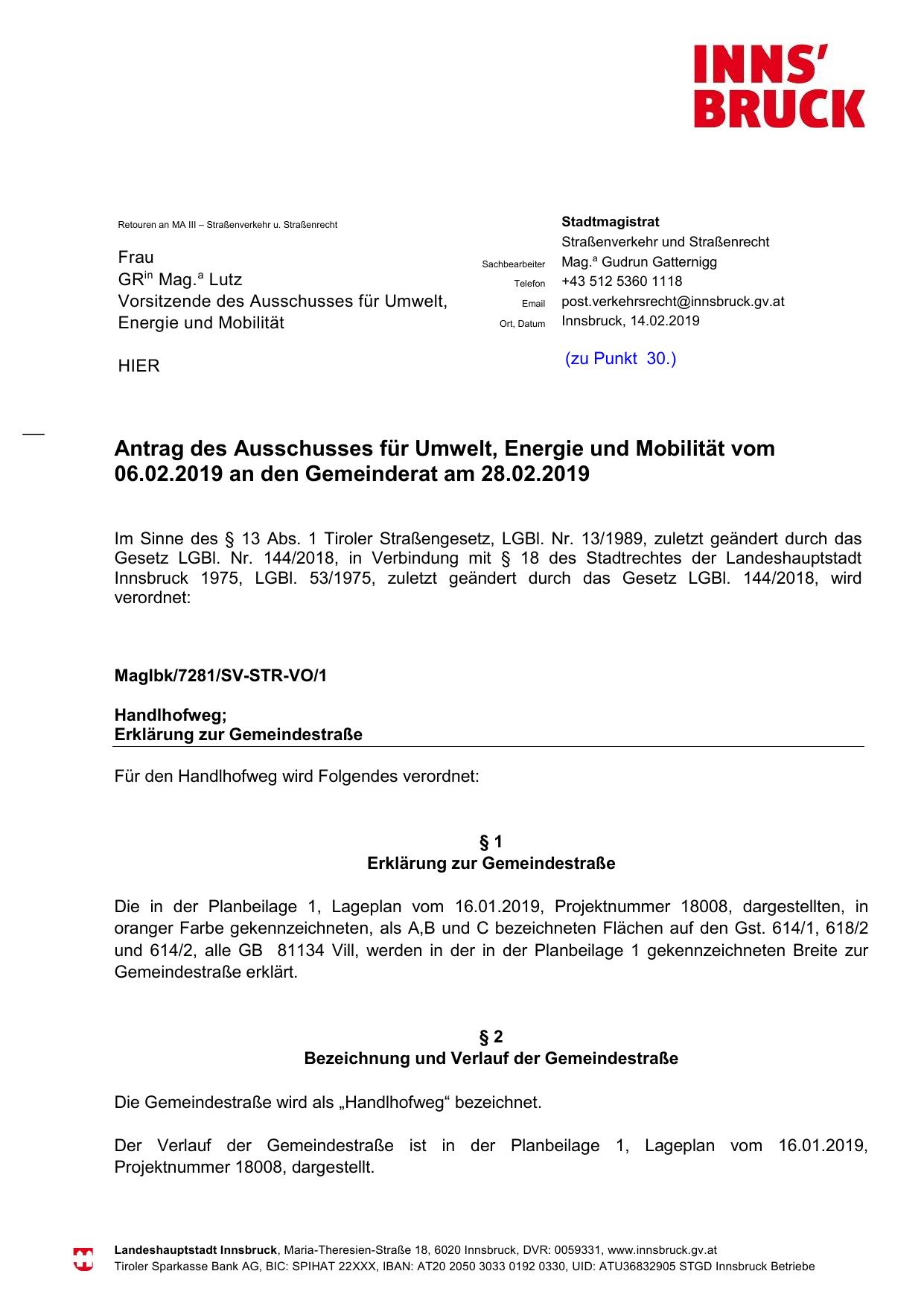 06.02.2019 an den Gemeinderat am 28.02.2019