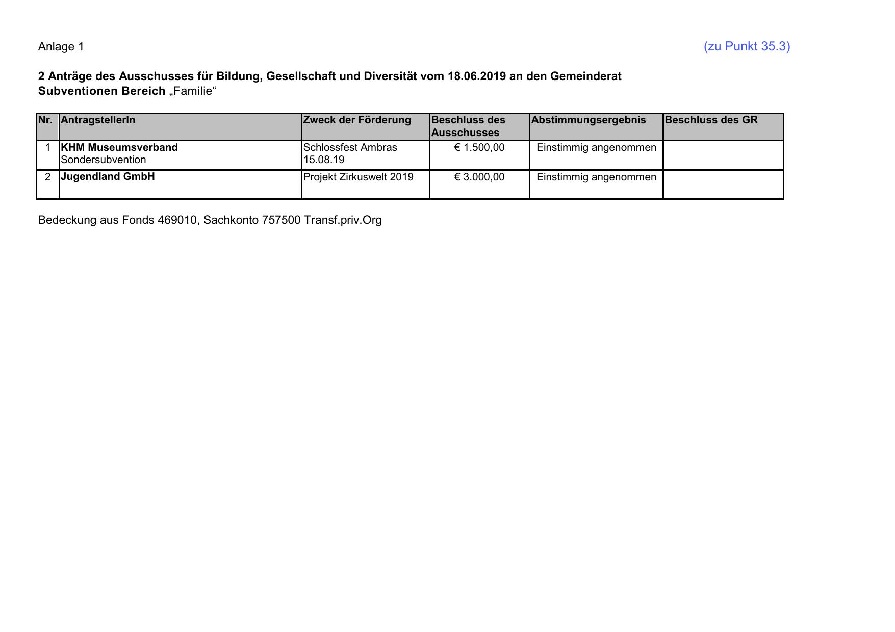2 Anträge des Ausschusses für Bildung, Gesellschaft und Diversität vom 18.06.2019 an den Gemeinderat