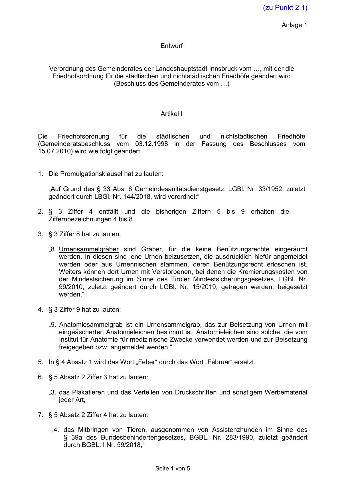 Verordnung des Gemeinderates der Landeshauptstadt Innsbruck vom …, mit der die