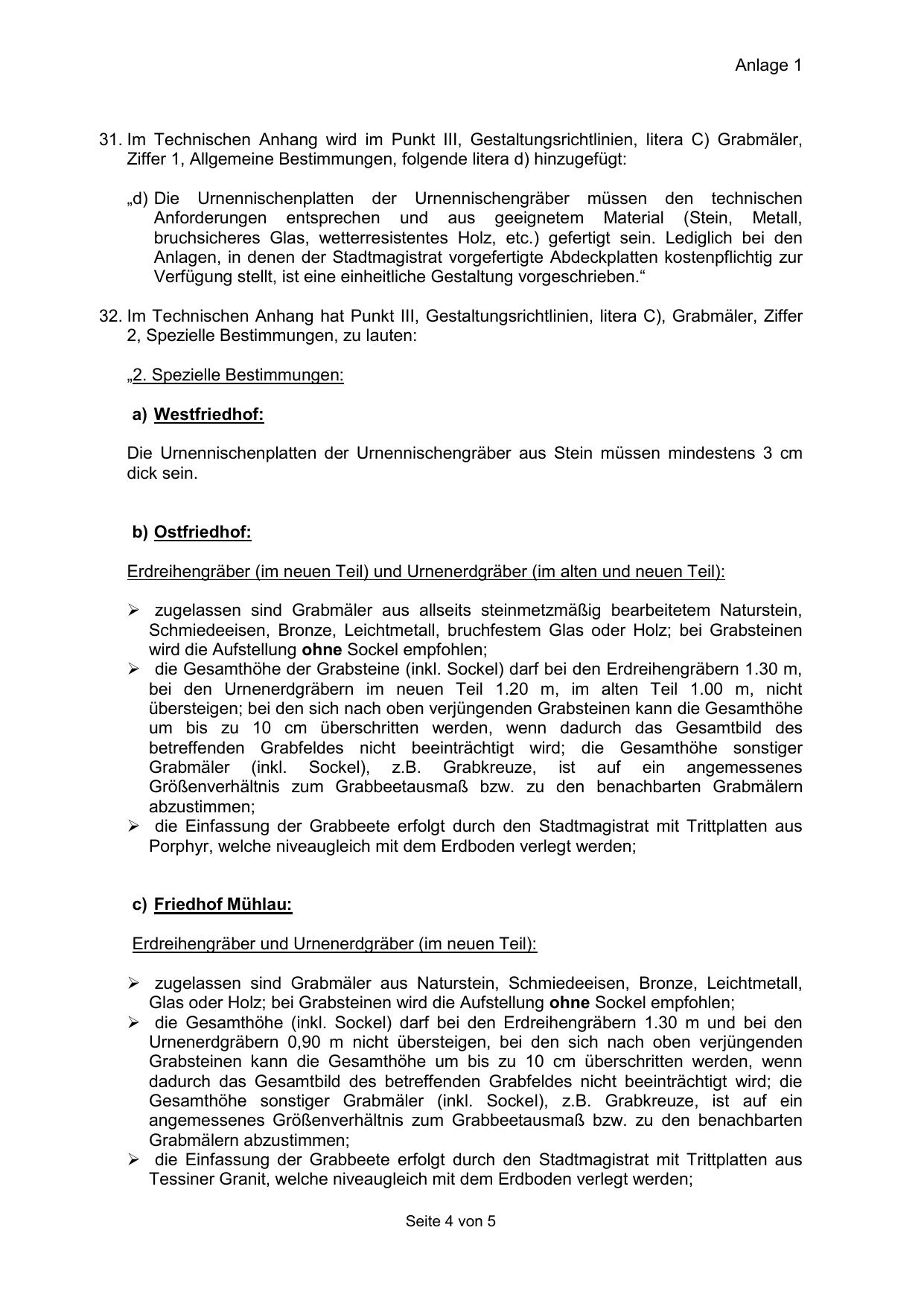 31. Im Technischen Anhang wird im Punkt III, Gestaltungsrichtlinien, litera C) Grabmäler,
