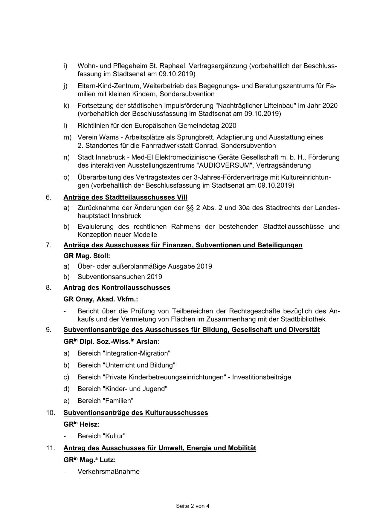 (vorbehaltlich der Beschlussfassung im Stadtsenat am 09.10.2019)