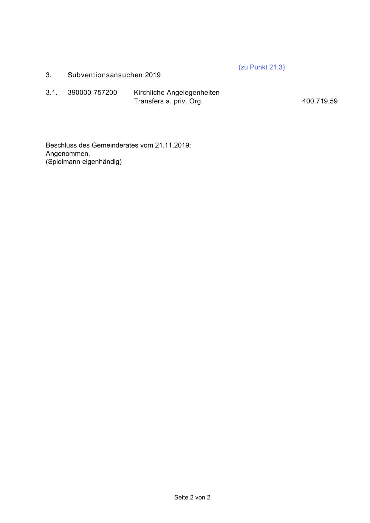 Beschluss des Gemeinderates vom 21.11.2019: