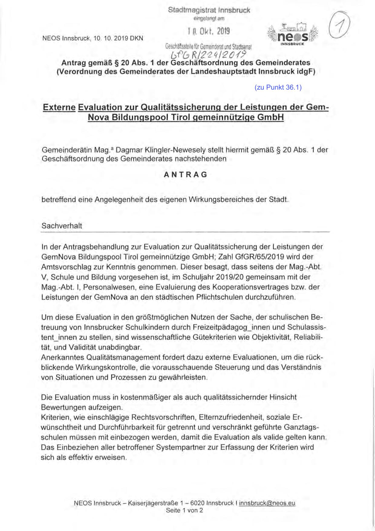 NEOS Innsbruck, 10. 10. 201 9 DKN