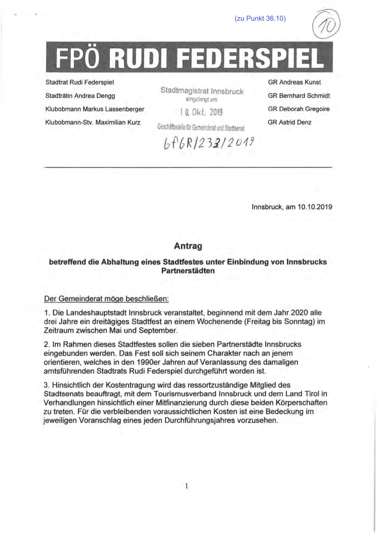amtsführenden Stadtrats Rudi Federspiel durchgeführt worden ist.