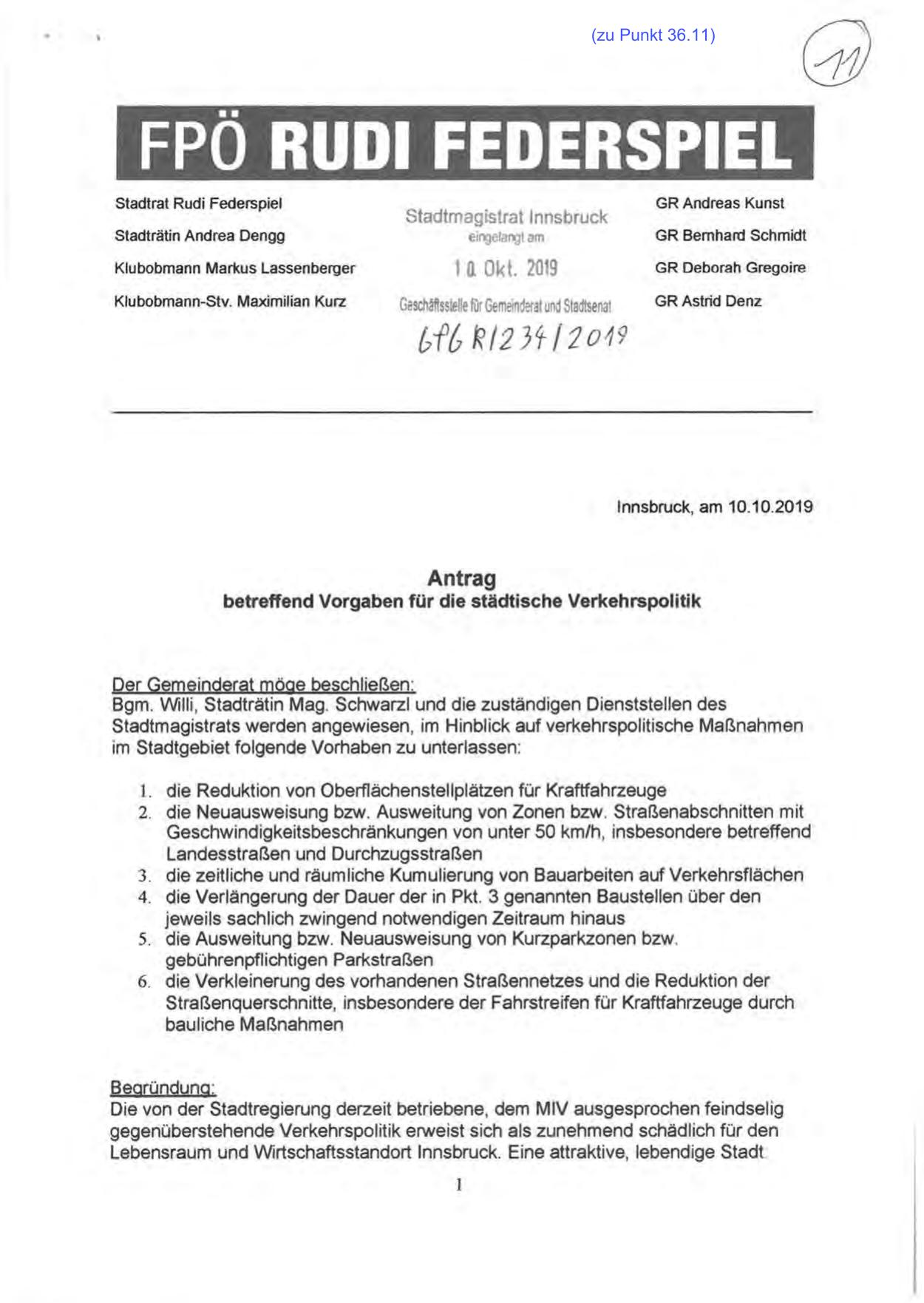 Stadtmagistrats werden angewiesen, im Hinblick auf verkehrspolitische Maßnahmen