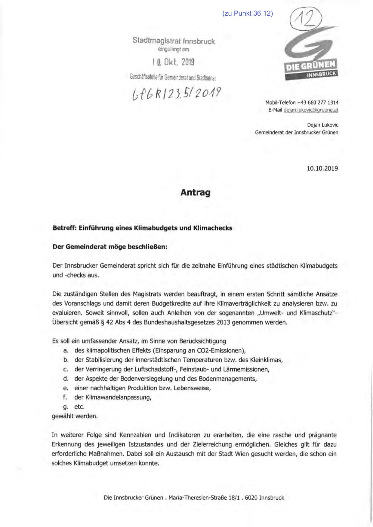 Die Innsbrucker Grünen . Maria-Theresien-Straße 18/1 . 6020 Innsbruck