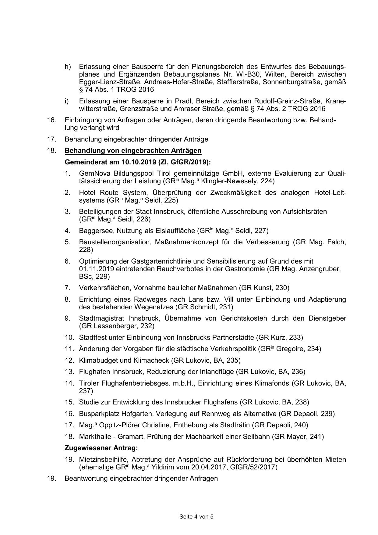 Gemeinderat am 10.10.2019 (Zl. GfGR/2019):