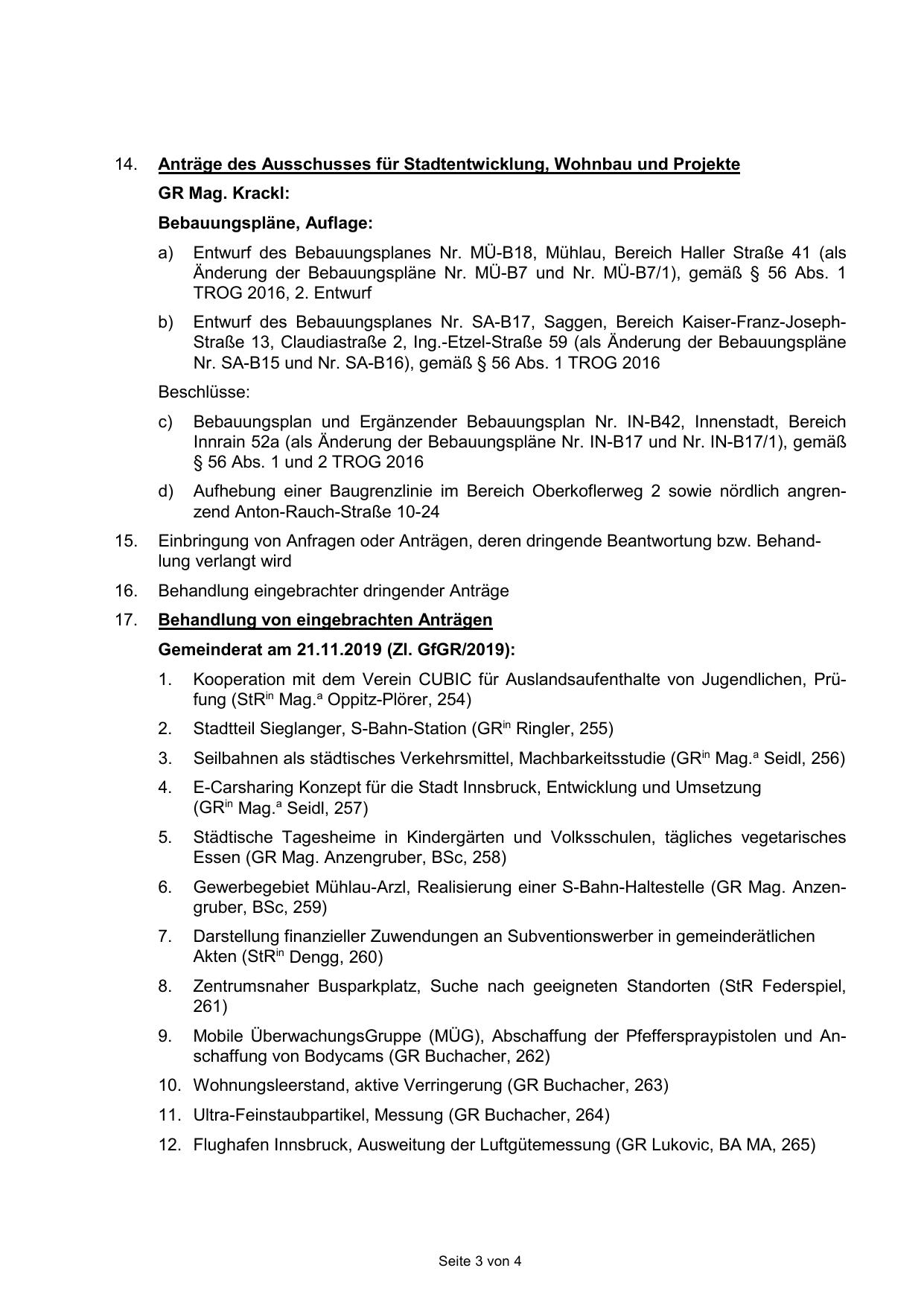 Gemeinderat am 21.11.2019 (Zl. GfGR/2019):