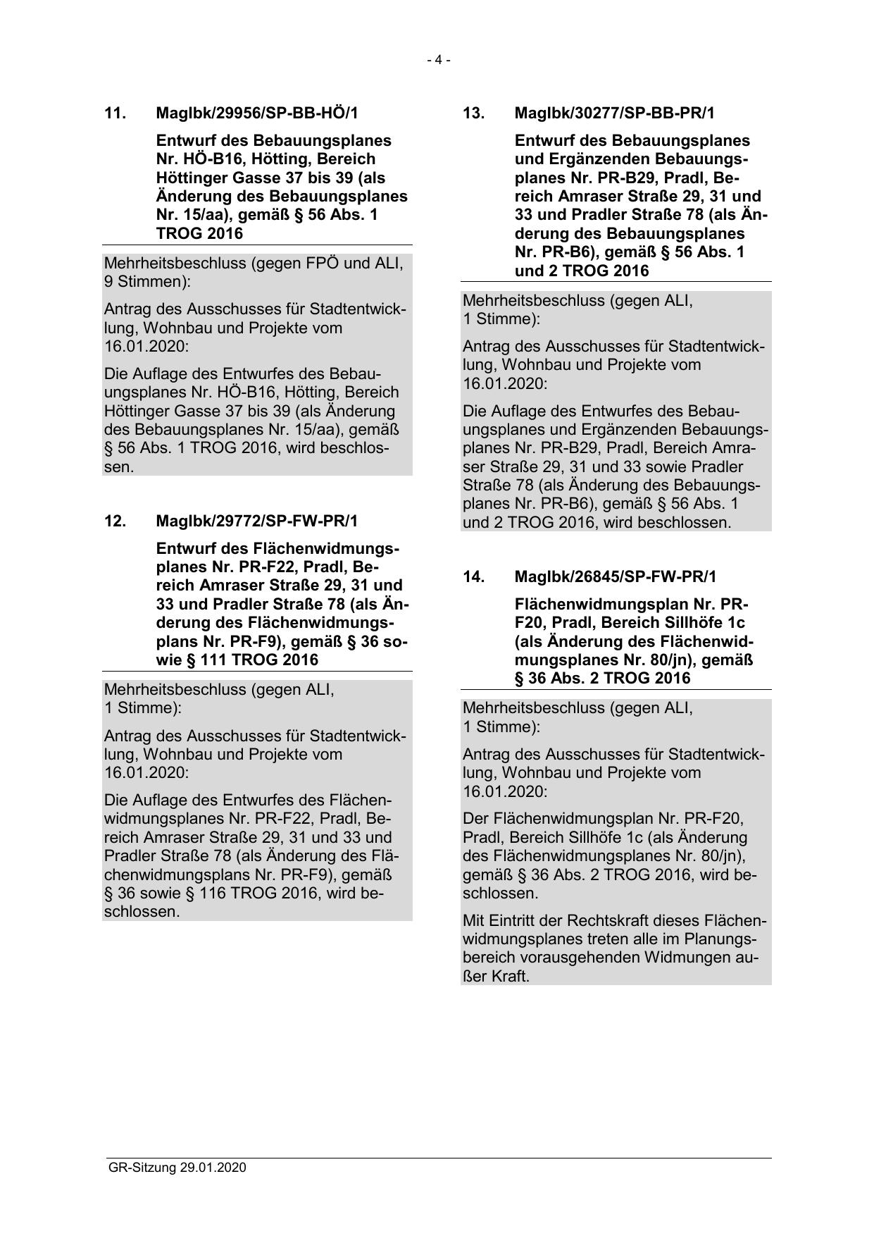 Mehrheitsbeschluss (gegen FPÖ und ALI,
