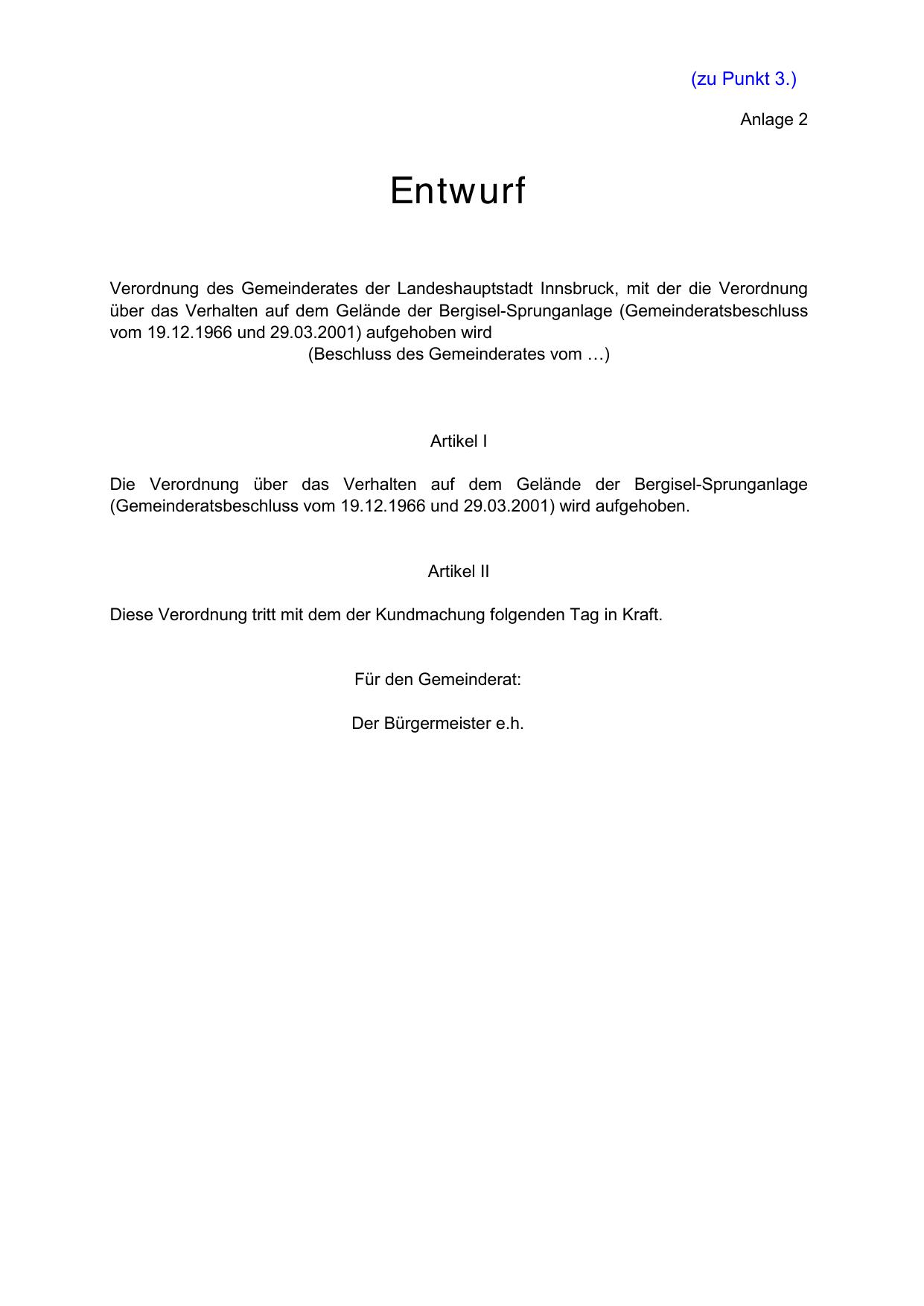 über das Verhalten auf dem Gelände der Bergisel-Sprunganlage (Gemeinderatsbeschluss