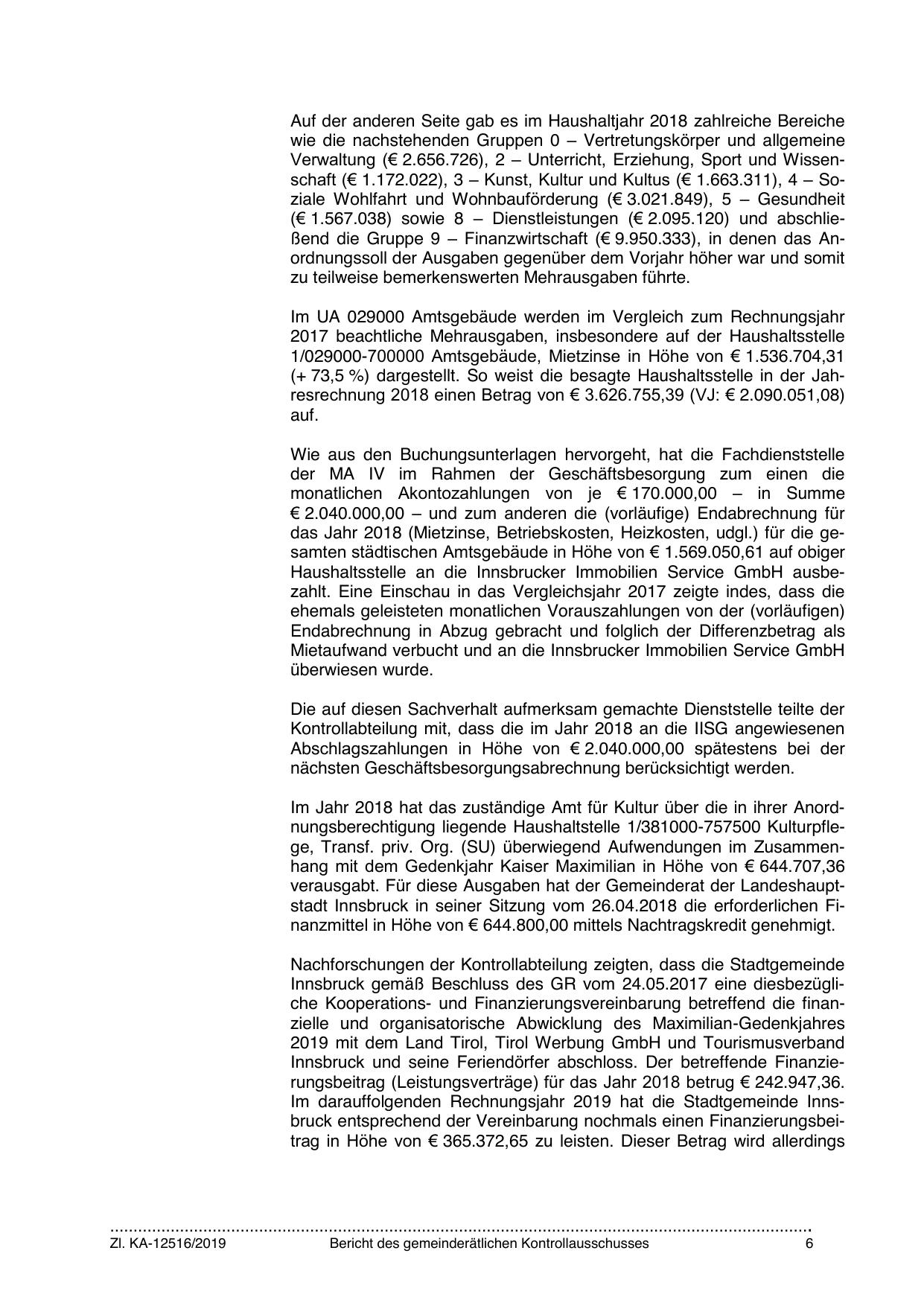 Haushaltsstelle an die Innsbrucker Immobilien Service GmbH ausbezahlt. Eine Einschau in das Vergleichsjahr 2017 zeigte indes, dass die