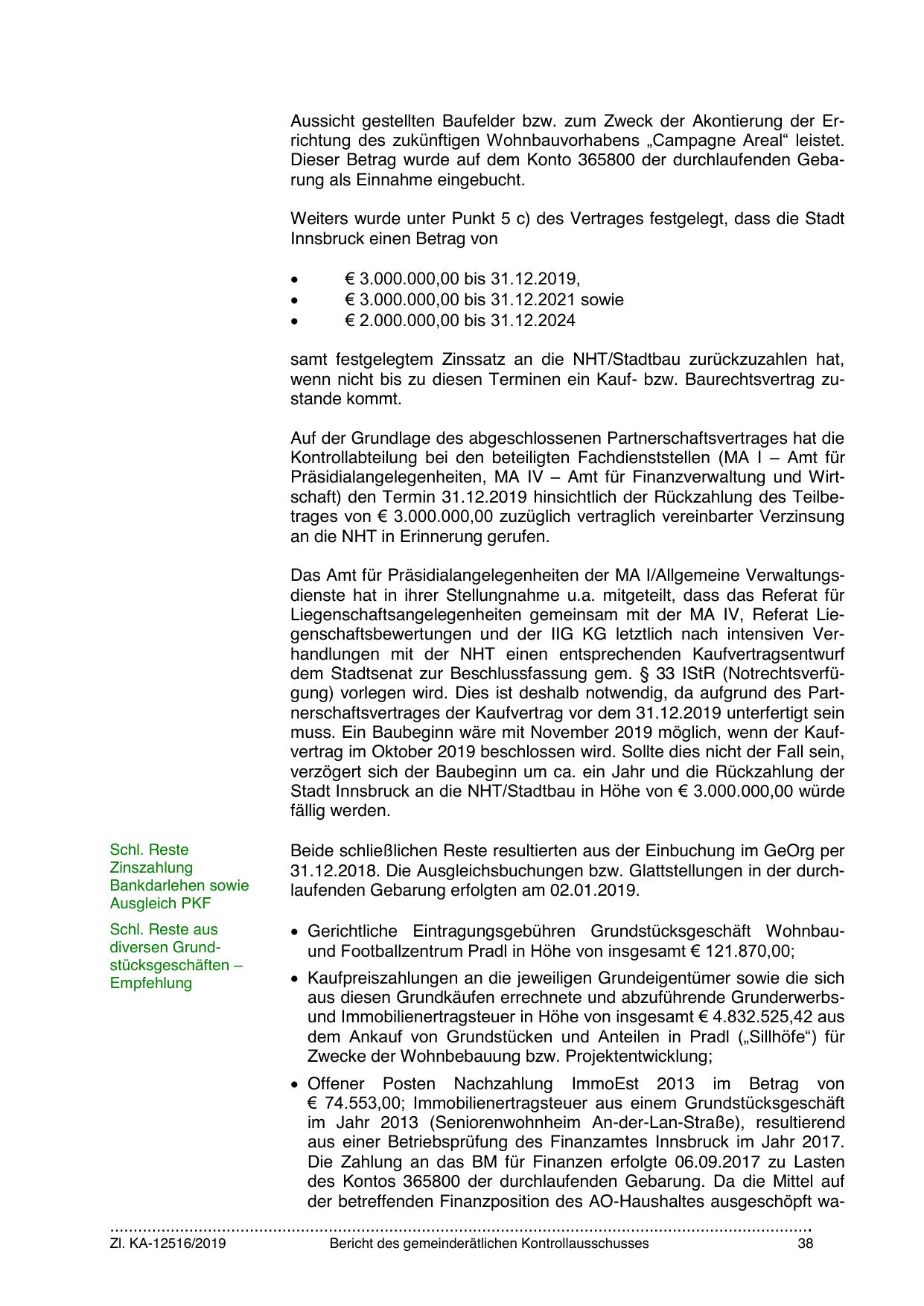 Stadt Innsbruck an die NHT/Stadtbau in Höhe von € 3.000.000,00 würde