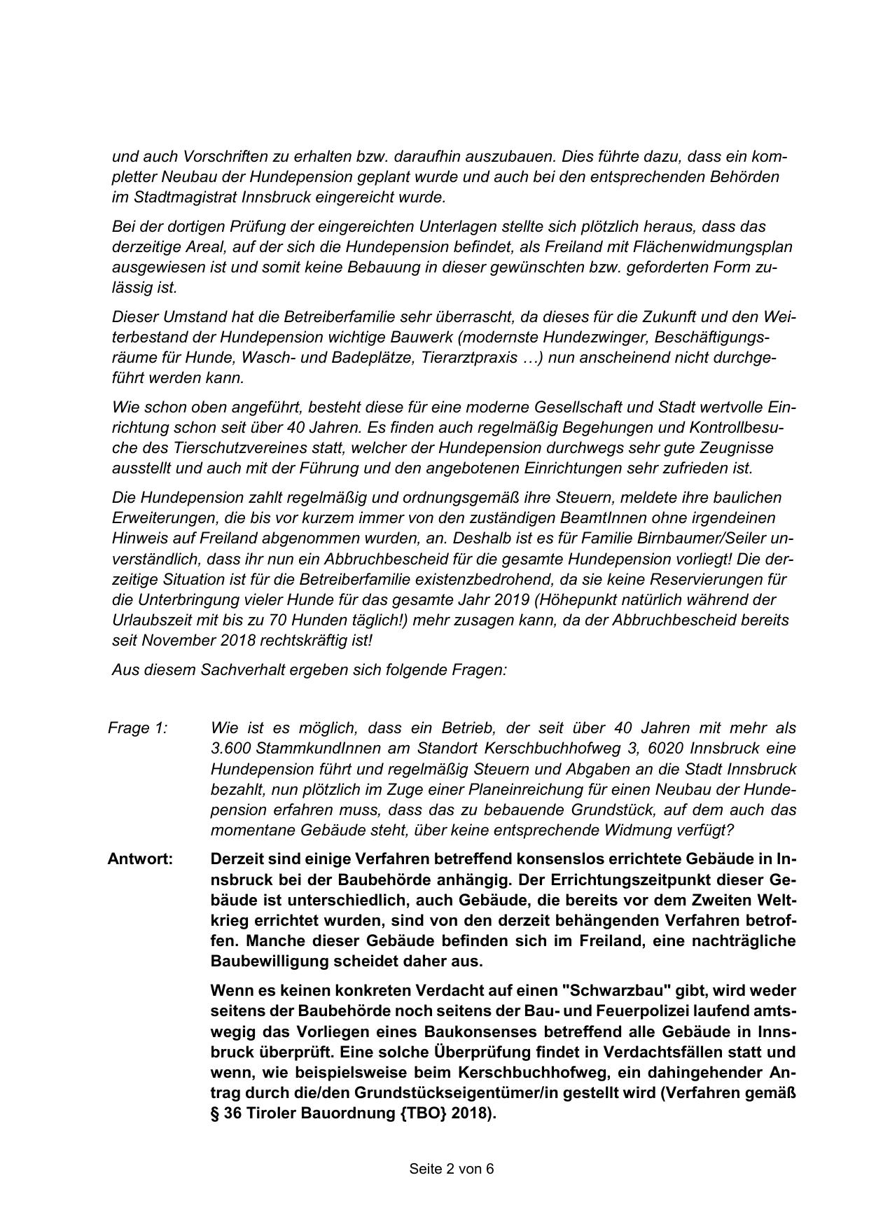 Hundepension führt und regelmäßig Steuern und Abgaben an die Stadt Innsbruck