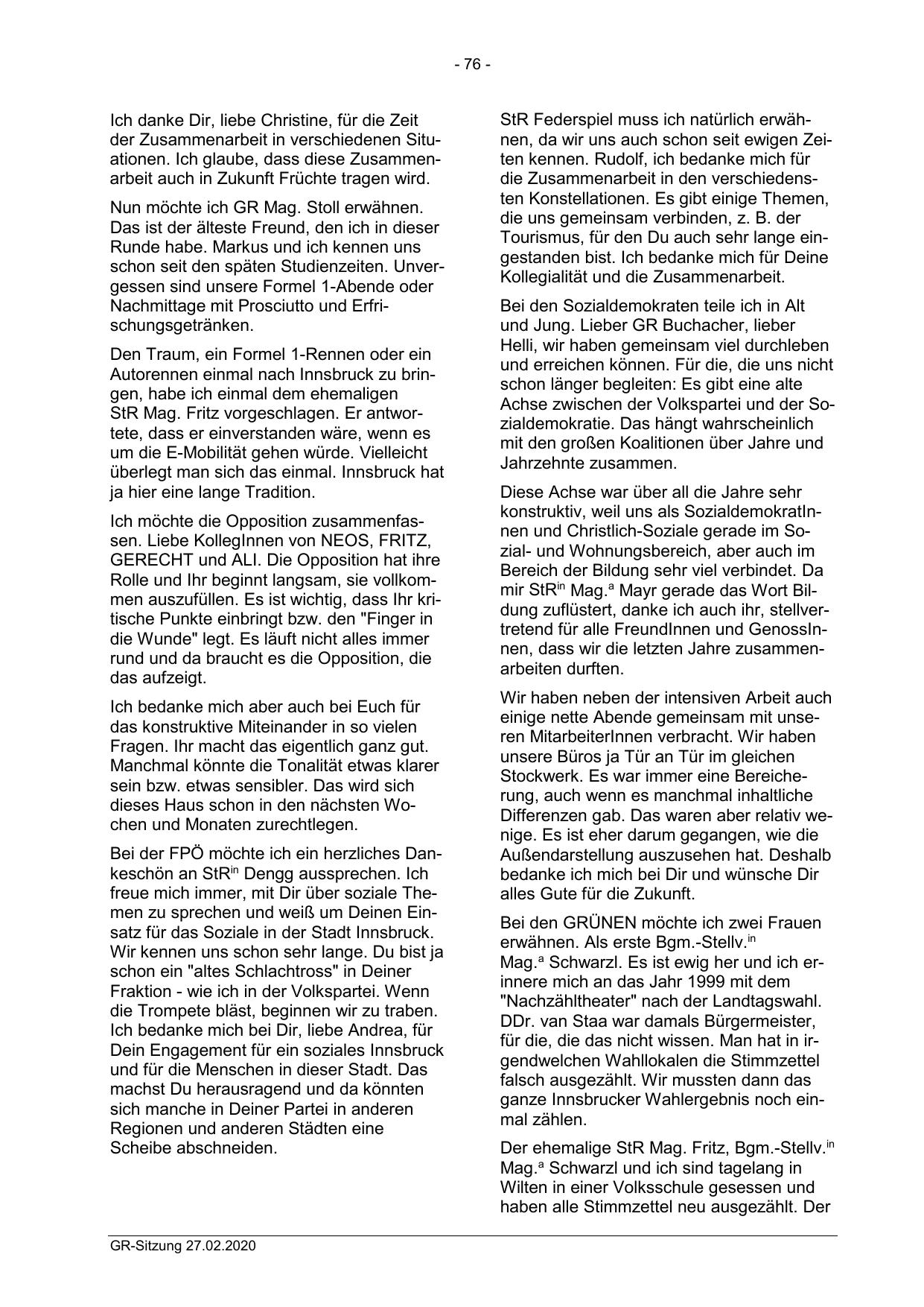 freue mich immer, mit Dir über soziale Themen zu sprechen und weiß um Deinen Einsatz für das Soziale in der Stadt Innsbruck.