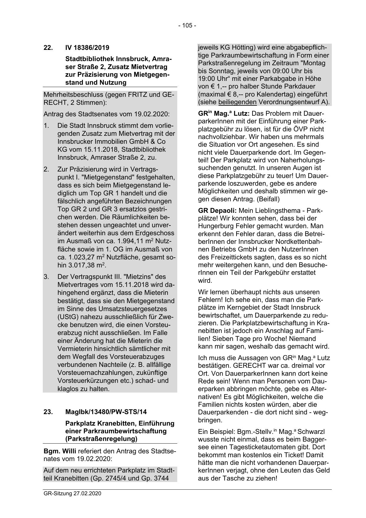 GR Depaoli: Mein Lieblingsthema - Parkplätze! Wir konnten sehen, dass bei der