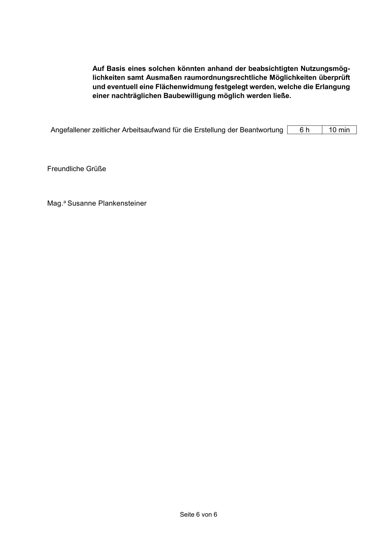 Angefallener zeitlicher Arbeitsaufwand für die Erstellung der Beantwortung