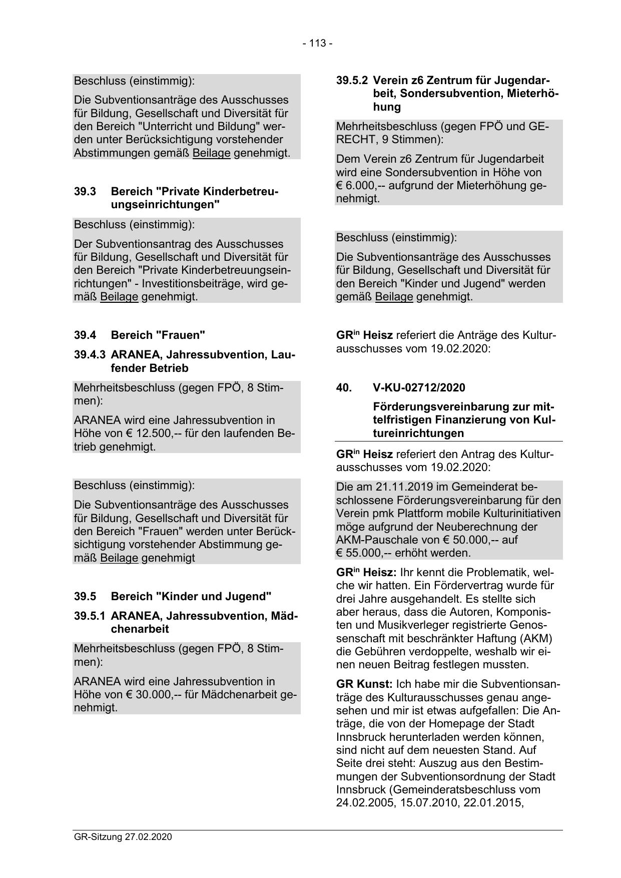 Mehrheitsbeschluss (gegen FPÖ und GERECHT, 9 Stimmen):